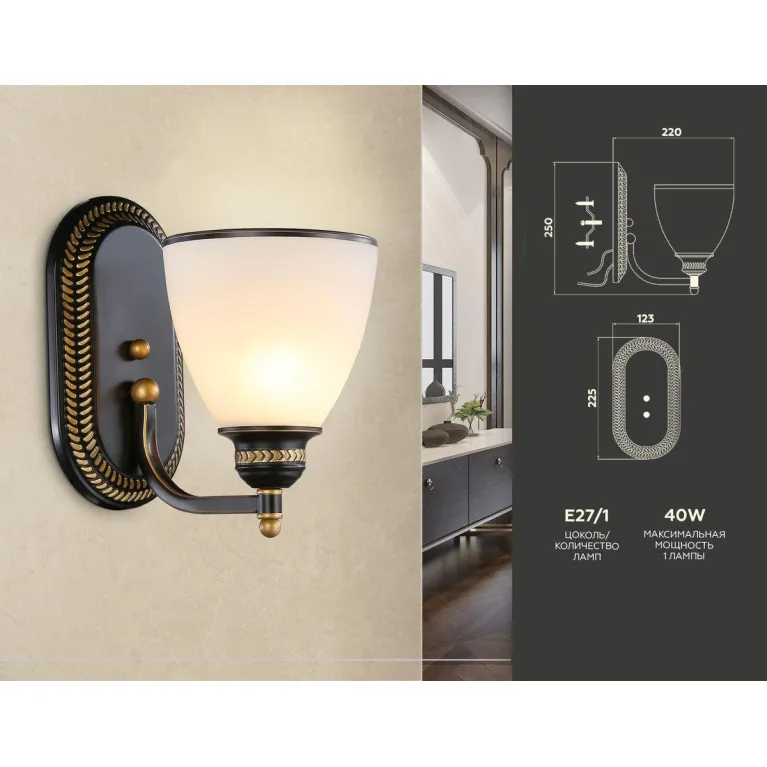 Бра Ambrella Light Traditional TR3083 оснащено одним источником света с цоколем E27, что позволяет использовать как традиционные лампы накаливания, так и энергосберегающие или светодиодные лампы, в зависимости от ваших предпочтений и потребностей.