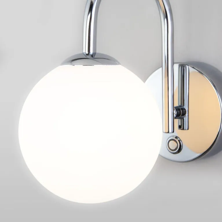 Корпус бра выполнен из качественного металла с хромированным покрытием, которое придаёт изделию современный и эстетически привлекательный вид. Плафон из белого матового стекла обеспечивает равномерное рассеивание света, создавая комфортное освещение в помещении.