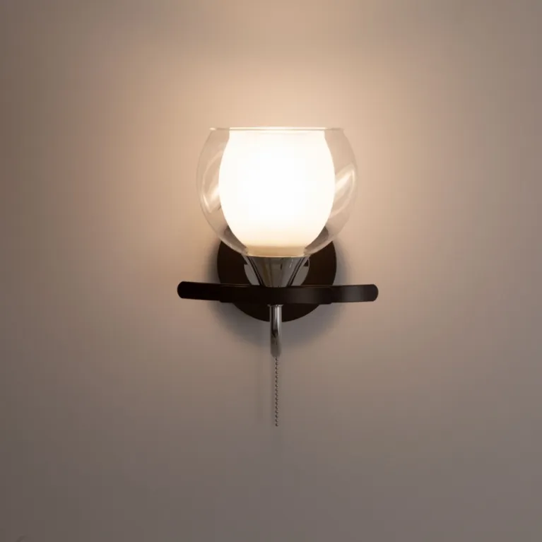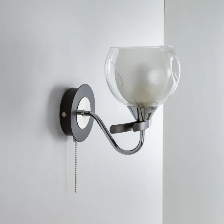 Корпус бра выполнен из качественного металла с хромированным покрытием, что придаёт изделию современный и эстетически привлекательный вид. Плафон из белого матового стекла обеспечивает мягкое и равномерное рассеивание света, создавая комфортное освещение в помещении.