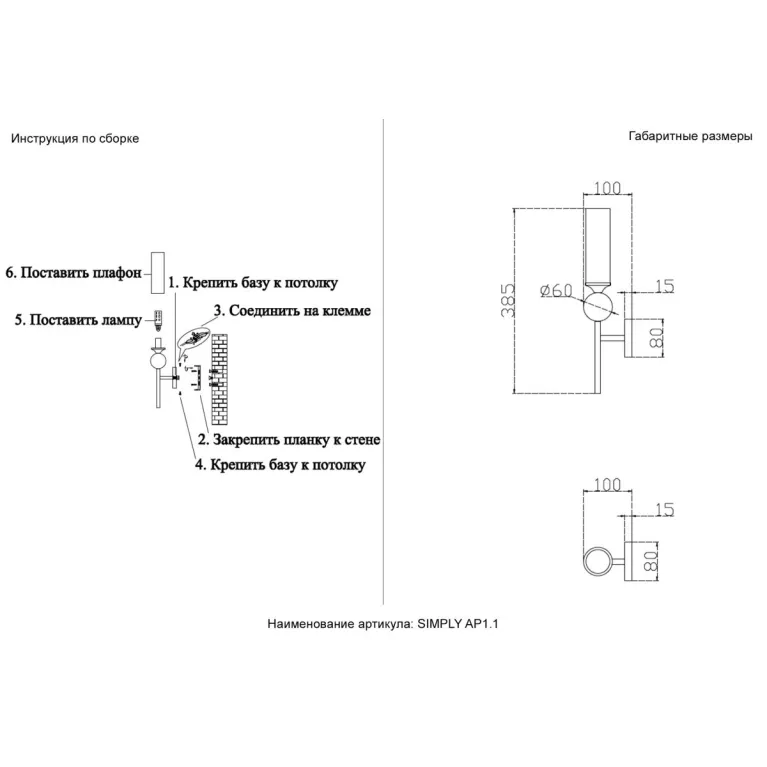 Бра Crystal Lux SIMPLY AP1.1 BRASS в Нижнем Новгороде