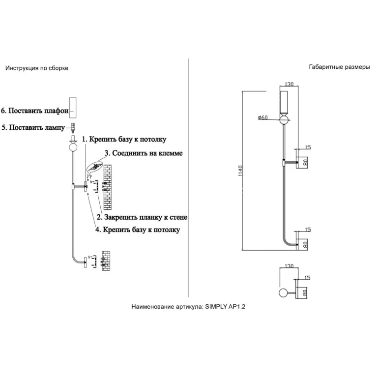 Бра Crystal Lux SIMPLY AP1.2 BRASS в Нижнем Новгороде