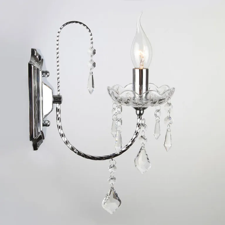 Корпус светильника выполнен из прочного металла с хромированным покрытием, которое придает изделию современный и стильный вид. Прозрачные хрустальные элементы, расположенные на основании бра, придают ему утонченность и изящество, создавая эффектный мерцающий отблеск.