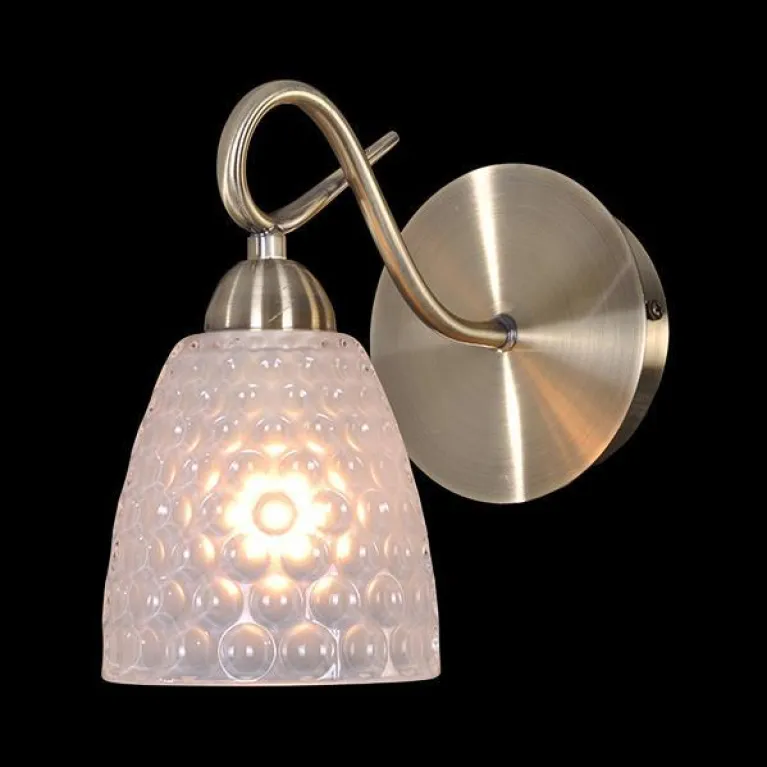 Корпус бра выполнен из прочного металла с эффектным покрытием бронзового цвета, которое придаёт изделию роскошный и антикварный вид. Плафон из белого матового стекла обеспечивает мягкое рассеивание света, создавая комфортное освещение в помещении.