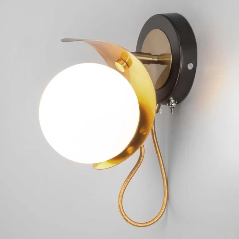 Корпус бра выполнен из прочного металла с черным матовым покрытием, которое придаёт изделию современный и стильный вид. Плафон из белого матового стекла обеспечивает мягкое и равномерное рассеивание света, создавая уютную атмосферу в помещении.