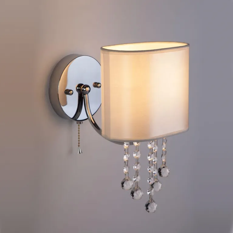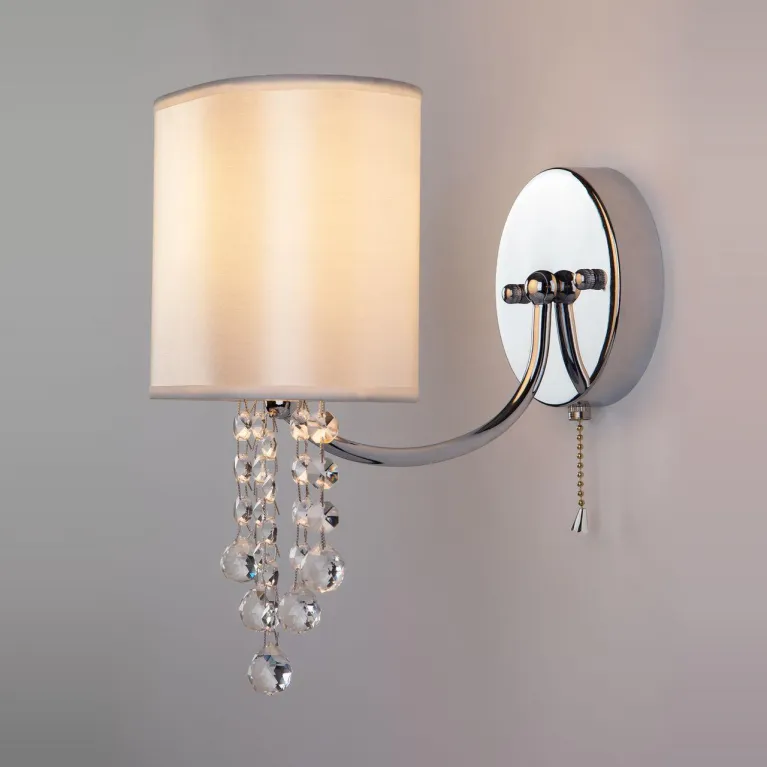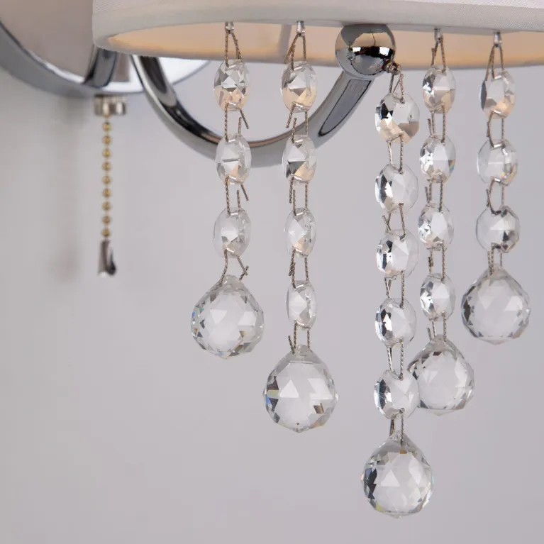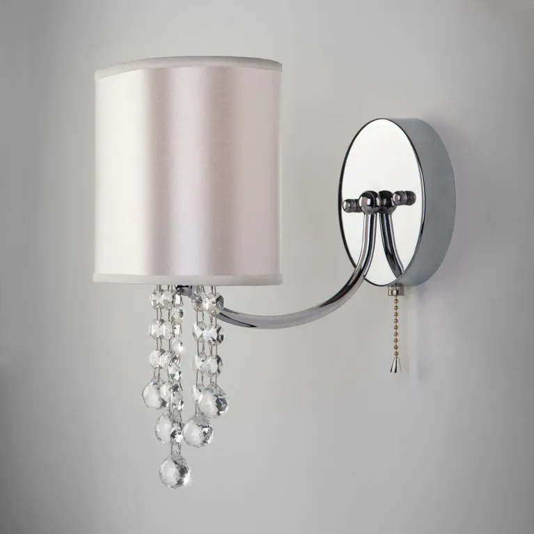 Корпус бра выполнен из качественного металла с хромированным покрытием, которое придаёт изделию современный и эстетически привлекательный вид. Прозрачные хрустальные элементы строццис придают светильнику лёгкость и утончённость, создавая игру света и тени.