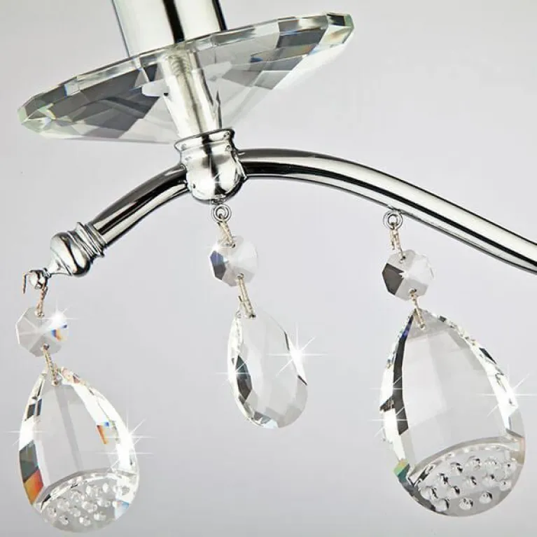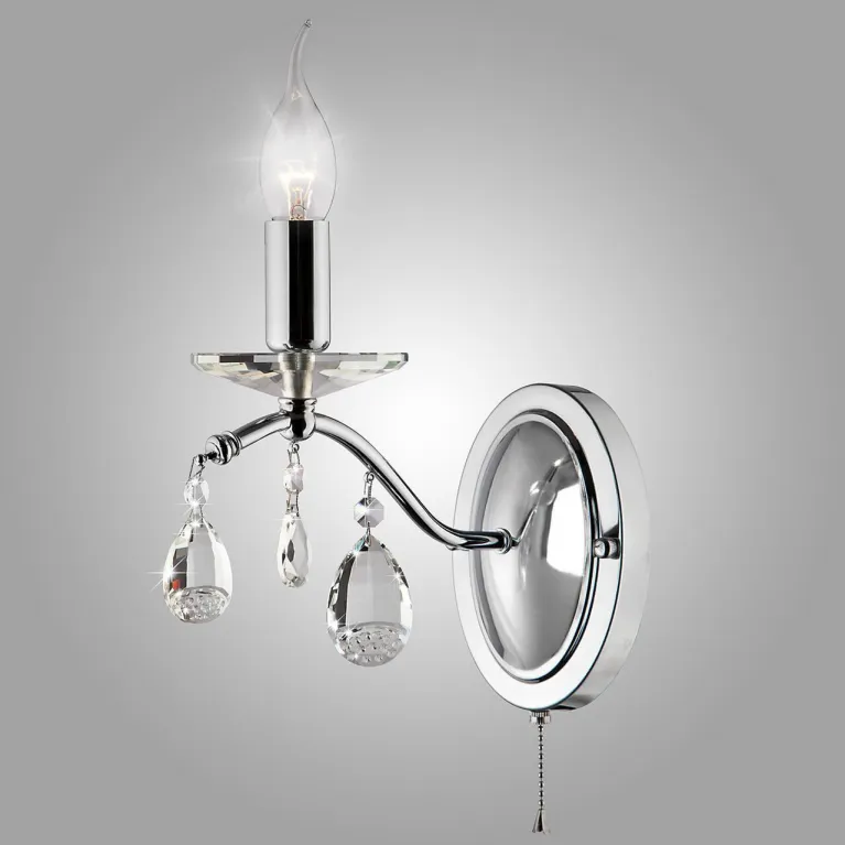 Корпус бра выполнен из прочного металла с хромированным покрытием, которое придаёт изделию современный и стильный вид. Прозрачные хрустальные подвески добавляют света и блеска, создавая эффектное мерцание и приятную атмосферу в помещении.