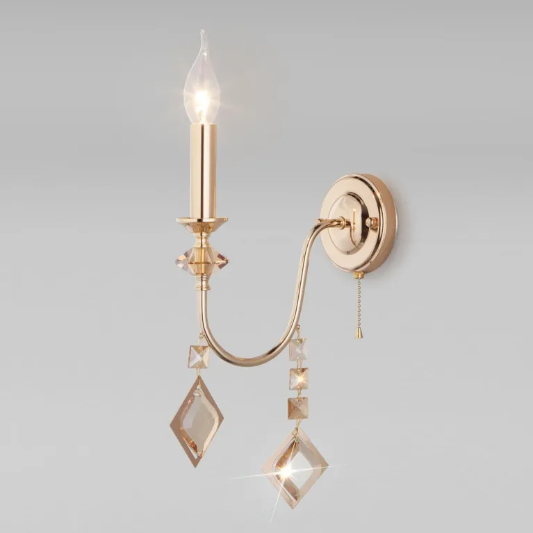 Представляем вам элегантное бра Eurosvet Telao 10120/1, которое станет изысканным дополнением любого интерьера. Этот светильник выполнен в золотом цвете и декорирован тонированным хрусталем Strotskis, что придаёт ему неповторимый стиль и роскошь.