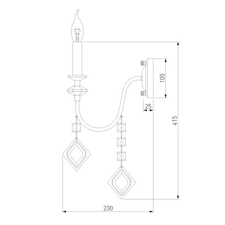 Бра оснащено одним источником света с цоколем E14, что позволяет использовать как традиционные лампы накаливания, так и энергосберегающие или светодиодные лампы, в зависимости от ваших предпочтений и потребностей. Суммарная мощность ламп не должна превышать 60 Вт.