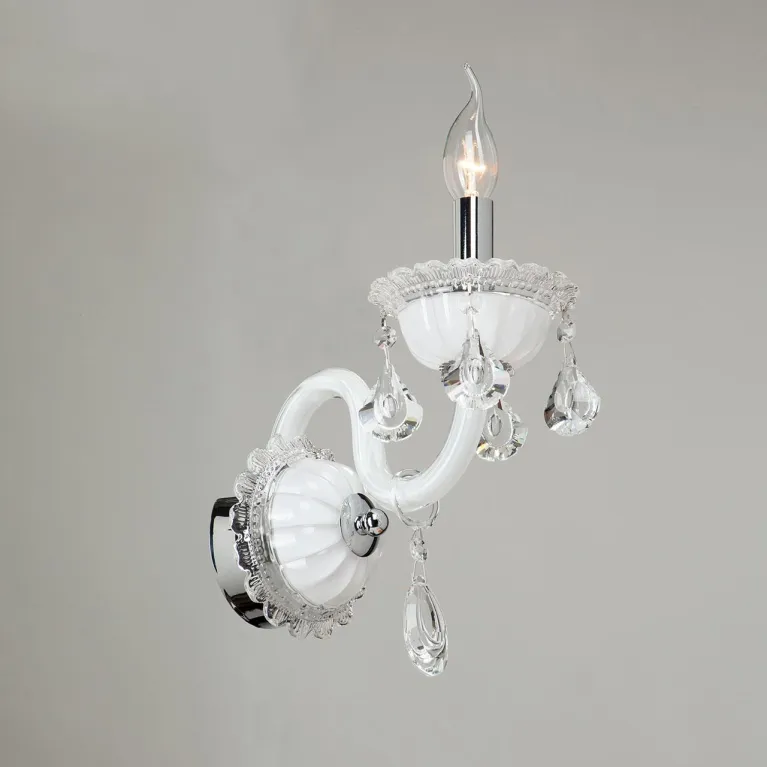 Корпус бра выполнен из прочного металла с хромированным покрытием, которое придаёт изделию современный и стильный вид. Плафон из белого матового стекла обеспечивает мягкое и равномерное рассеивание света, создавая уютную атмосферу в помещении.