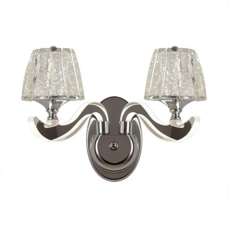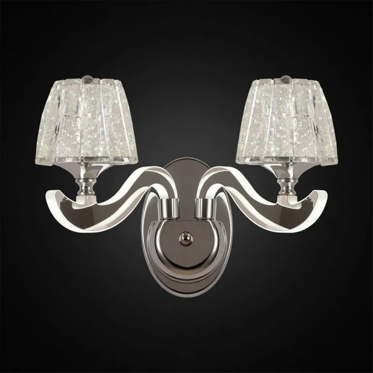 Корпус бра выполнен из качественного металла с хромированным покрытием, которое придаёт изделию современный и стильный вид. Плафоны изготовлены из прочного белого матового стекла, обеспечивающего мягкое и равномерное рассеивание света.