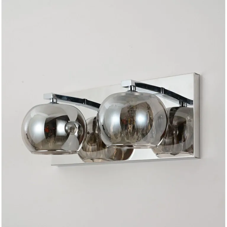 Корпус бра выполнен из прочного металла с хромированным покрытием, которое придаёт изделию современный и стильный вид. Плафоны изготовлены из высококачественного стекла, обеспечивая равномерное рассеивание света и создавая мягкое и приятное освещение в помещении.