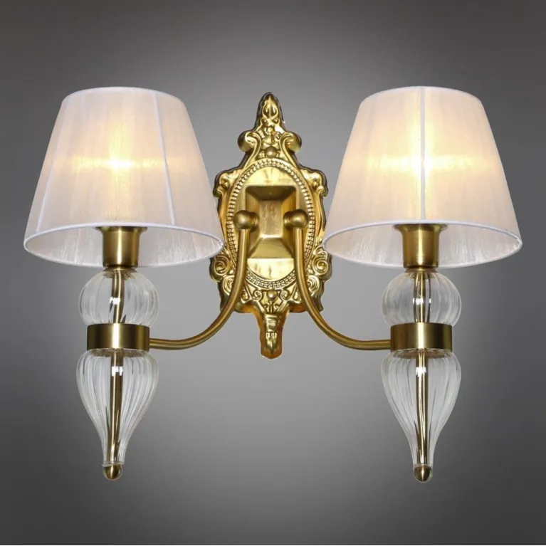 Бра оснащено двумя источниками света с цоколем E14, что позволяет использовать как традиционные лампы накаливания, так и энергосберегающие или светодиодные лампы, в зависимости от ваших предпочтений и потребностей. Суммарная мощность ламп не должна превышать 60 Вт, что обеспечивает мягкое и равномерное освещение пространства.