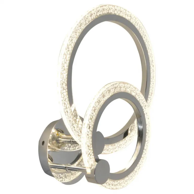 Корпус бра выполнен из прочного металла с хромированным покрытием, которое придаёт изделию современный и стильный вид. Плафоны изготовлены из белого матового стекла, обеспечивающего мягкое и равномерное рассеивание света, создавая уютную атмосферу в помещении.