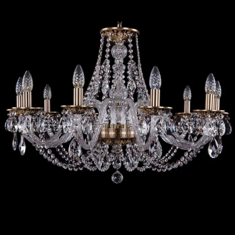 Люстра оснащена десятью лампами, что обеспечивает яркое и равномерное освещение пространства. Патрон E14 позволяет использовать лампы мощностью до 40 Вт, что гарантирует достаточный уровень освещения и создает комфортную атмосферу в помещении. Суммарная мощность ламп - 400 Вт.