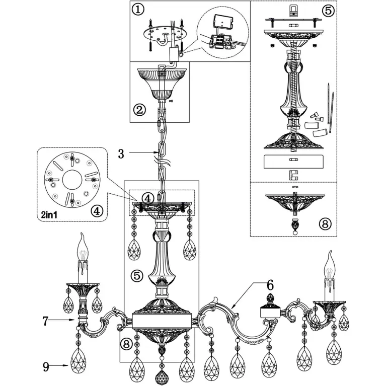 Люстра оснащена восемью лампами типа GU10, что обеспечивает яркое и равномерное освещение пространства. Она идеально подходит для помещений с высокими потолками, так как ее высота составляет 1200 мм, а диаметр основания - 620 мм. Изготовленная из высококачественного металла и акрила, люстра отличается прочностью и долговечностью, что гарантирует долгий срок службы.