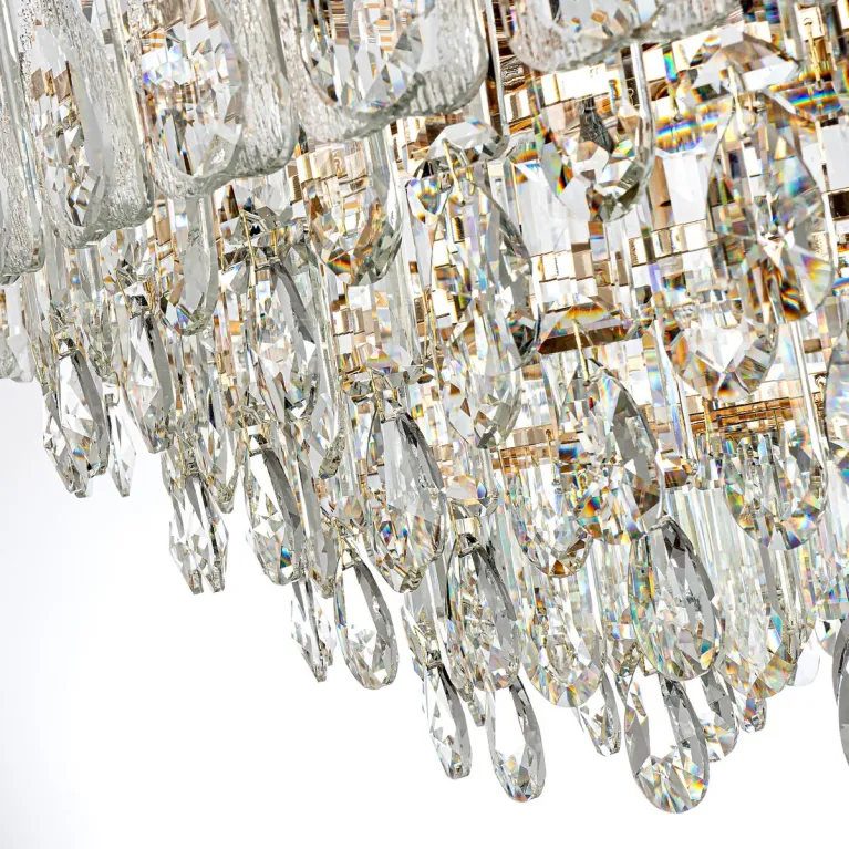 Преобладающий цвет плафонов: Прозрачный, арматуры: Хром; материал изготовления арматуры: Металл, размеры, мм: / высота 1200 / диаметр 800. Общая мощность – 880 Ватт, а максимальная площадь освещения до 20 м2. Основной тип ламп, предусмотренный производителем: Накаливания с цоколем E14. В зависимости от предпочтений можно использовать лампы теплового, холодного или нейтрального света, за исключением люстр с типом цоколя LED.
