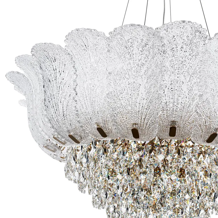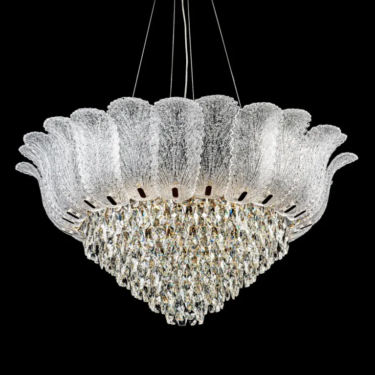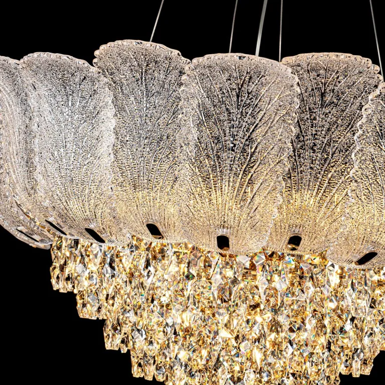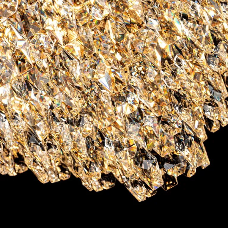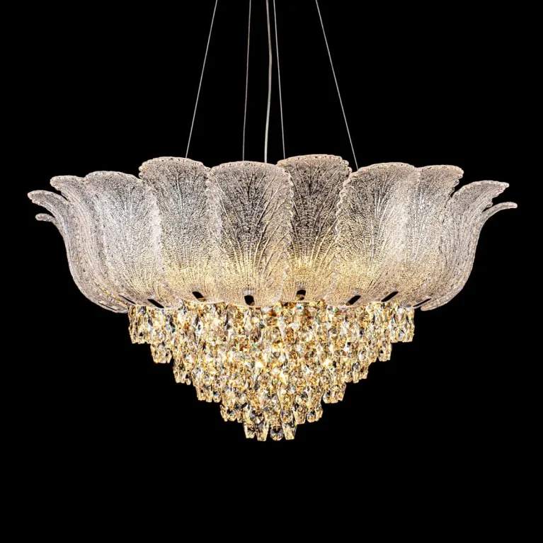 Преобладающий цвет плафонов: Прозрачный, арматуры: Золото; материал изготовления арматуры: Металл, размеры, мм: / высота 1500 / диаметр 800. Общая мощность – 680 Ватт, а максимальная площадь освещения до 20 м2. Основной тип ламп, предусмотренный производителем: Накаливания с цоколем E14. В зависимости от предпочтений можно использовать лампы теплового, холодного или нейтрального света, за исключением люстр с типом цоколя LED.