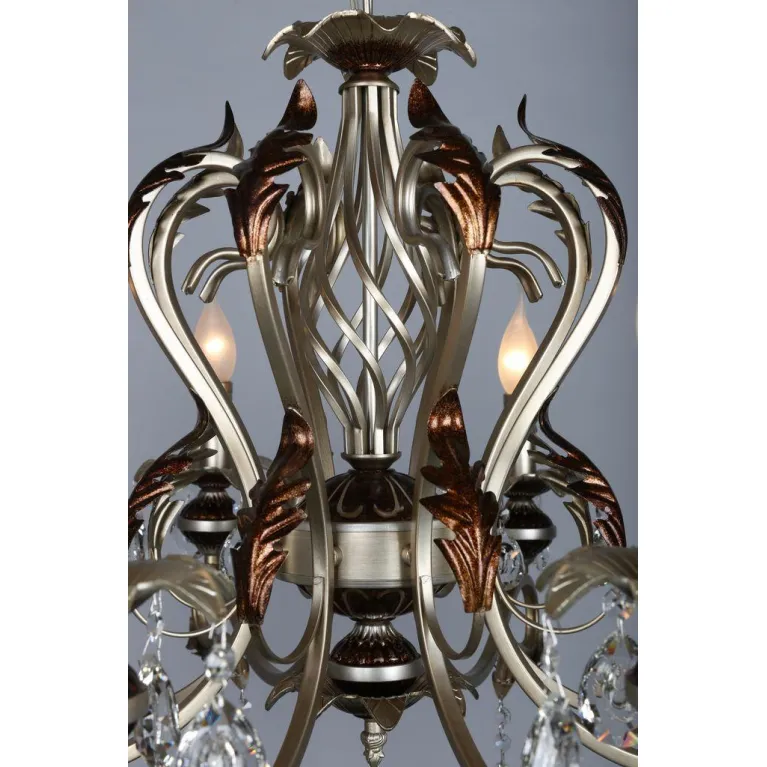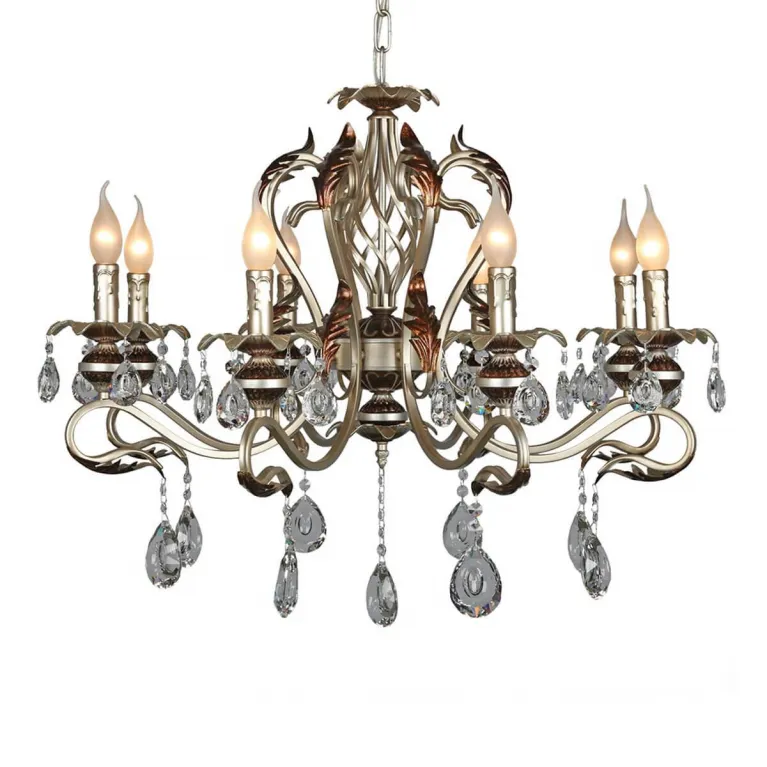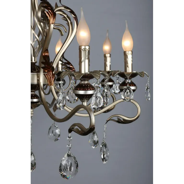 Люстра оснащена восемью источниками света с цоколем E14, что позволяет использовать различные типы ламп, включая энергосберегающие и светодиодные. Суммарная мощность ламп составляет 320 Вт, что обеспечивает яркое и равномерное освещение пространства.