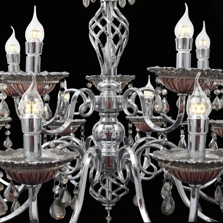 Люстра оснащена пятью лампами, которые могут быть источниками света типа E14 (миньон). Такое решение обеспечивает яркое и равномерное освещение пространства, создавая уютную атмосферу в вашем доме. Суммарная мощность ламп составляет 60 Вт, что эквивалентно современным светодиодным источникам света.