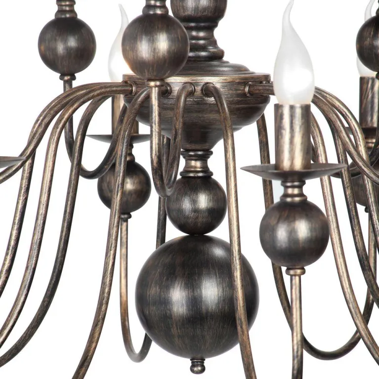 Люстра оснащена семью основными и пятнадцатью дополнительными источниками света, что обеспечивает яркое и равномерное освещение пространства. Она идеально подходит для помещений с высокими потолками, так как её высота составляет 820 мм.