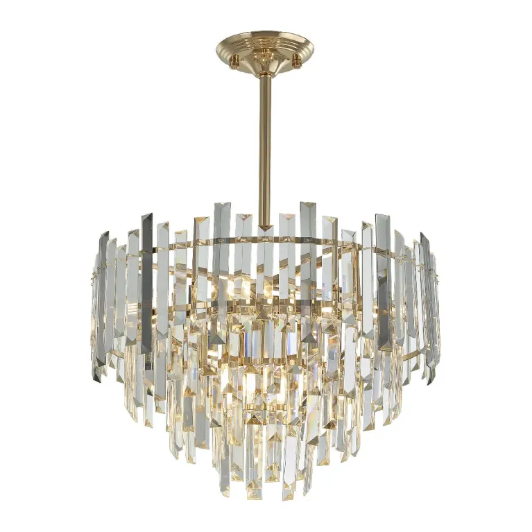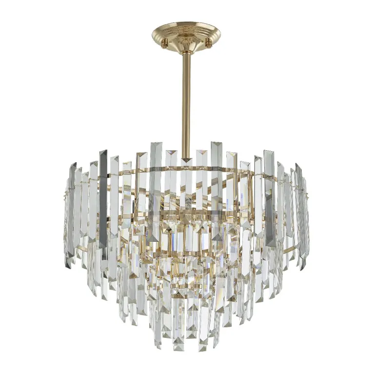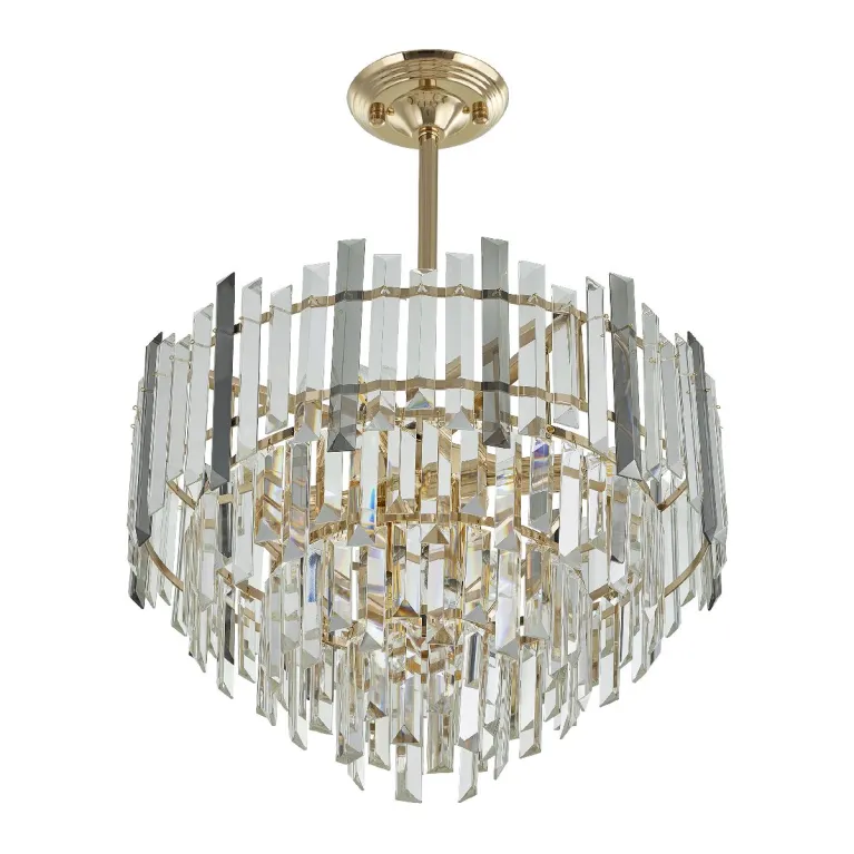 Преобладающий цвет плафонов: Дымчатый, арматуры: Золото; материал изготовления арматуры: Металл, размеры, мм: / высота 630 / диаметр 470. Общая мощность – 280 Ватт. Основной тип ламп, предусмотренный производителем: Накаливания с цоколем E14. В зависимости от предпочтений можно использовать лампы теплового, холодного или нейтрального света, за исключением люстр с типом цоколя LED.