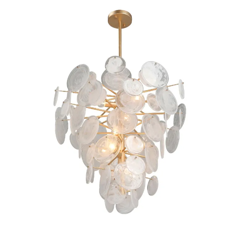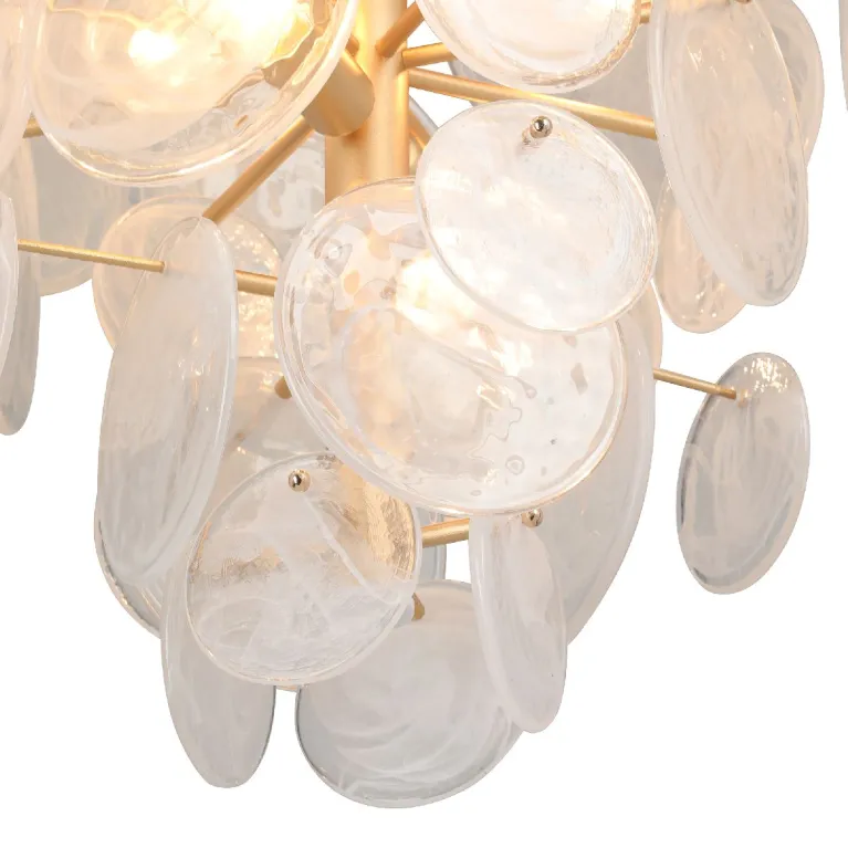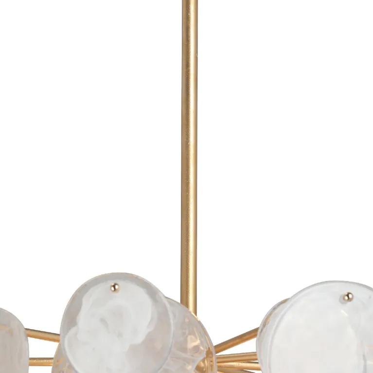 Преобладающий цвет плафонов: Прозрачный, арматуры: Золото; материал изготовления арматуры: Металл, размеры, мм: / высота 1180 / диаметр 700. Общая мощность – 320 Ватт, а максимальная площадь освещения до 16 м2. Основной тип ламп, предусмотренный производителем: Накаливания с цоколем E14. В зависимости от предпочтений можно использовать лампы теплового, холодного или нейтрального света, за исключением люстр с типом цоколя LED.