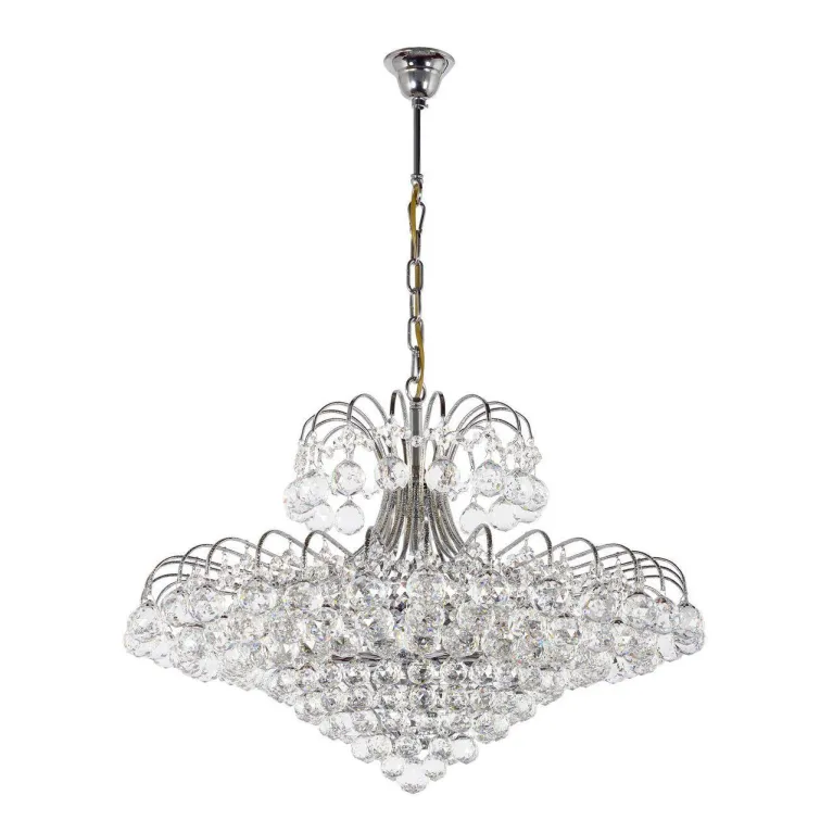 Декоративные хрустальные элементы придают люстре особый шарм и утонченность, делая её центральным элементом интерьера. Такая люстра прекрасно подойдет для гостиной, столовой или спальни, создавая атмосферу роскоши и уюта.