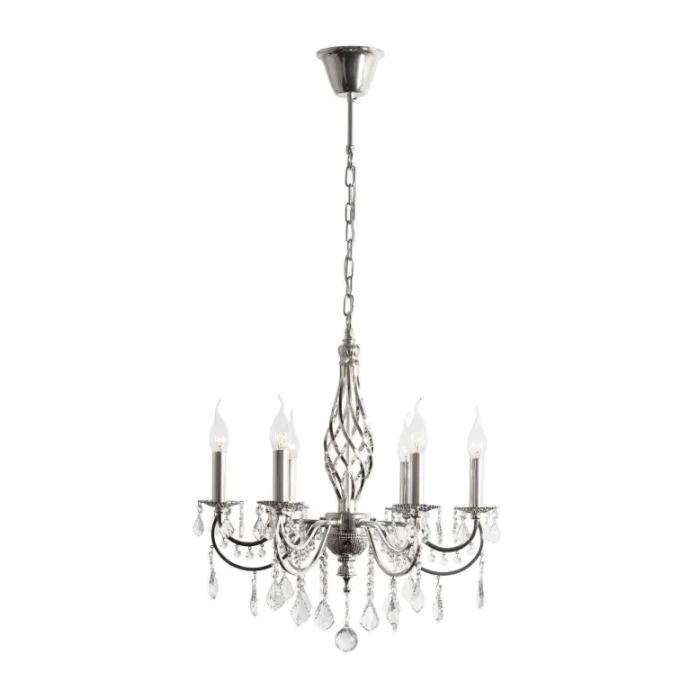Люстра оснащена пятью лампами, что обеспечивает яркое и равномерное освещение пространства. Она идеально подходит для просторных гостиной, столовой или спальни, добавляя им роскоши и стиля. Основание выполнено из прочного металла, а изящные хрустальные подвески придают светильнику неповторимый шарм.