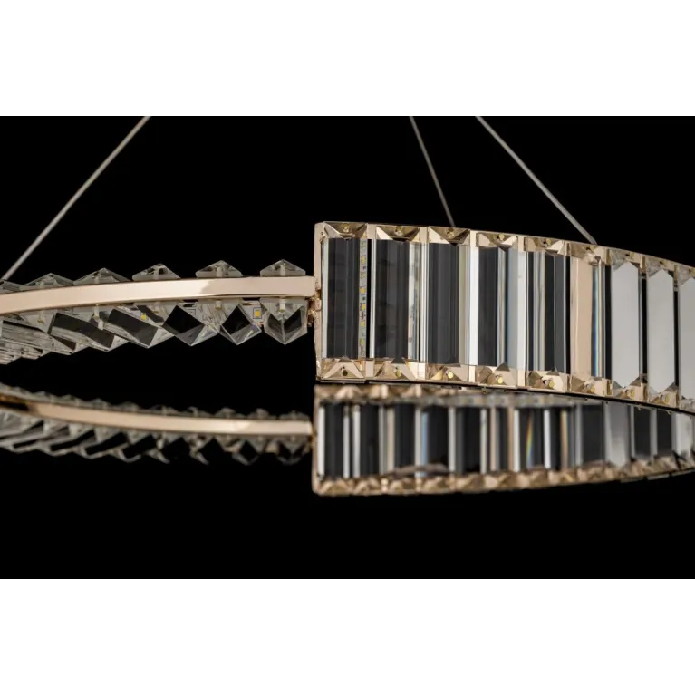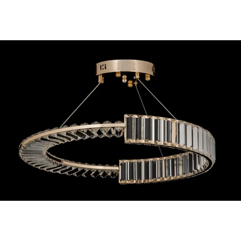 Преобладающий цвет плафонов: Прозрачный, арматуры: Золото; материал изготовления арматуры: Металл, размеры, мм: / высота 70 / диаметр 600. Общая мощность – Ватт. Основной тип ламп, предусмотренный производителем: Светодиодная с цоколем LED. В зависимости от предпочтений можно использовать лампы теплового, холодного или нейтрального света, за исключением люстр с типом цоколя LED.