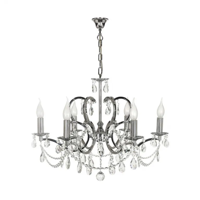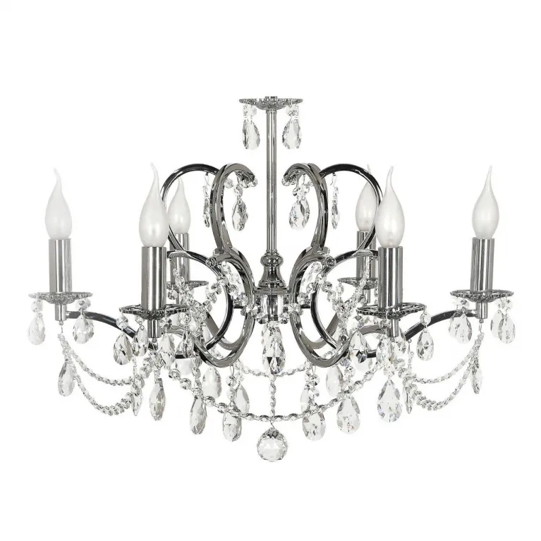Основание люстры выполнено из прочного металла, а декоративные элементы из хрусталя добавляют роскоши и утонченности. Подвесная конструкция позволяет регулировать высоту люстры, адаптируя её под высоту потолков и особенности помещения.