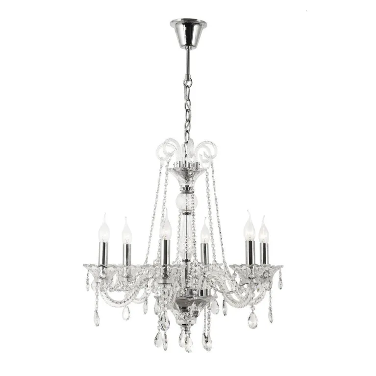 Основание люстры выполнено из прочного металла, что гарантирует её долговечность и надежность. Тонкое хрустальное покрытие придает светильнику неповторимый блеск и изящество, делая его центральным элементом декора любого помещения.