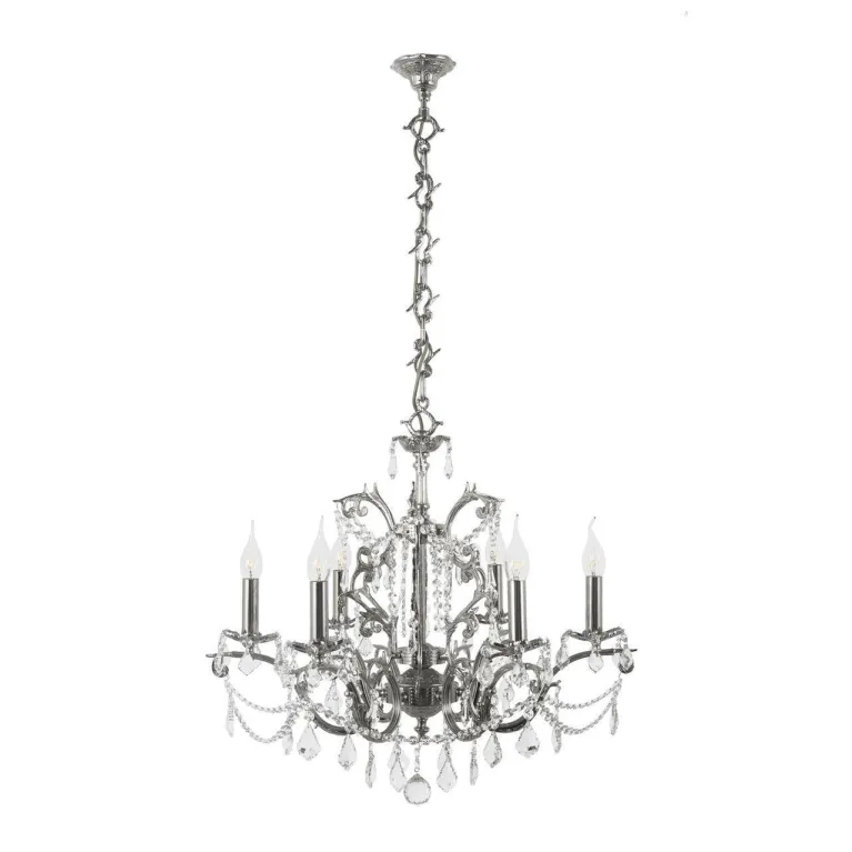 Люстра оснащена шестью лампами, что обеспечивает яркое и равномерное освещение пространства. Она идеально подходит для помещений с высокими потолками, поскольку её высота составляет 70 см. Основание выполнено из прочного металла, что гарантирует долговечность и надежность конструкции.