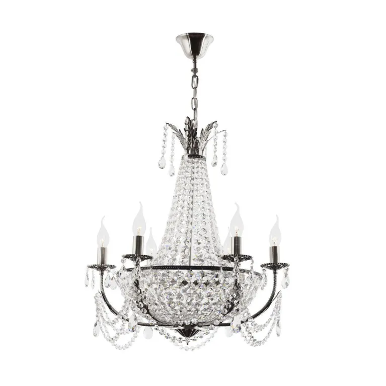 Эта люстра имеет 8 ламп типа E14, что обеспечивает яркое и равномерное освещение пространства. Она прекрасно подходит для просторных гостиной, столовой или спальни, добавляя им роскоши и утонченности. Высота люстры составляет 500 мм, а диаметр - 800 мм, что делает её оптимальным выбором для помещений со стандартными потолками.