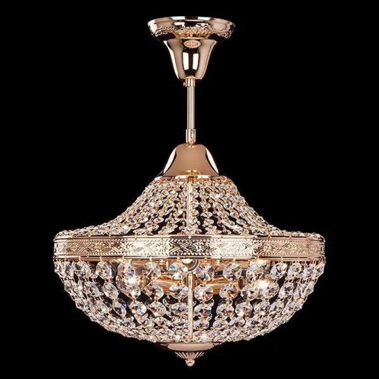 Основанием люстры служит прочный металлический корпус золотого цвета, который гармонично сочетается с прозрачными хрустальными элементами строкис. Такое сочетание материалов придает светильнику элегантный и современный вид, делая его центральным элементом декора комнаты.