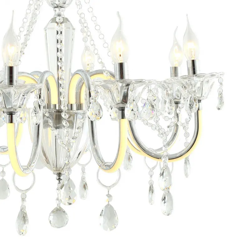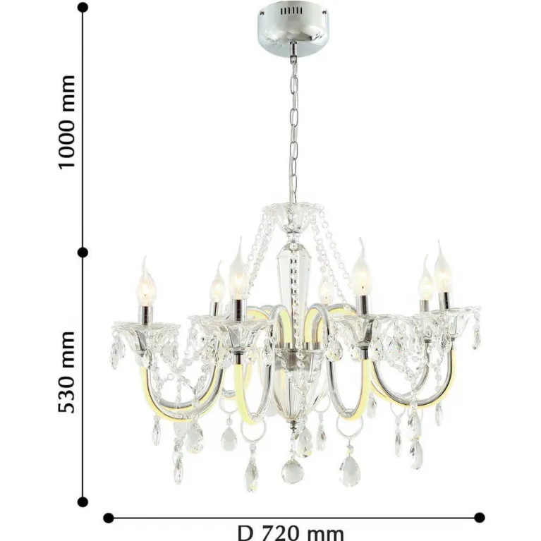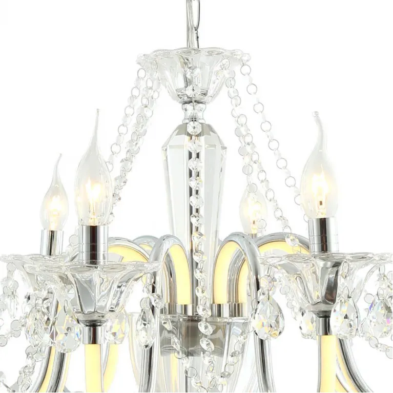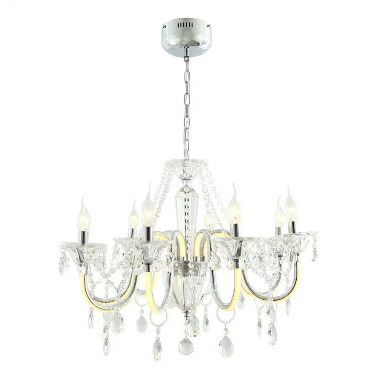 Люстра оснащена восемью лампами, что обеспечивает яркое и равномерное освещение. Она идеально подходит для просторных гостиных, столовых или спален, создавая комфортную атмосферу и подчеркивая красоту вашего дома.