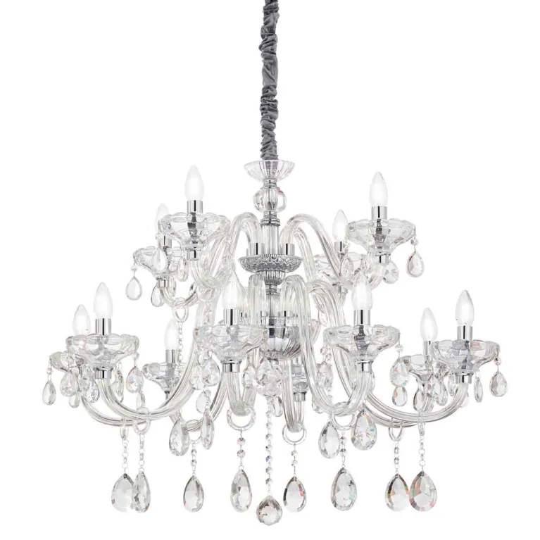 Люстра оснащена двенадцатью лампами, которые обеспечивают яркое и равномерное освещение пространства. Патрон E14 позволяет использовать как традиционные лампы накаливания, так и энергосберегающие или светодиодные, что предоставляет максимальную гибкость в выборе источников света.