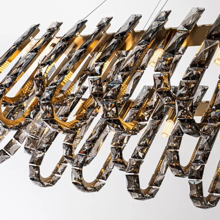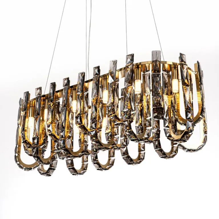 Преобладающий цвет плафонов: Дымчатый, арматуры: Латунь; материал изготовления арматуры: Металл, размеры, мм: длина 800 / ширина 320 / высота 1400 Общая мощность – Ватт, а максимальная площадь освещения до 17 м2. Основной тип ламп, предусмотренный производителем: Светодиодная с цоколем G9. В зависимости от предпочтений можно использовать лампы теплового, холодного или нейтрального света, за исключением люстр с типом цоколя LED.