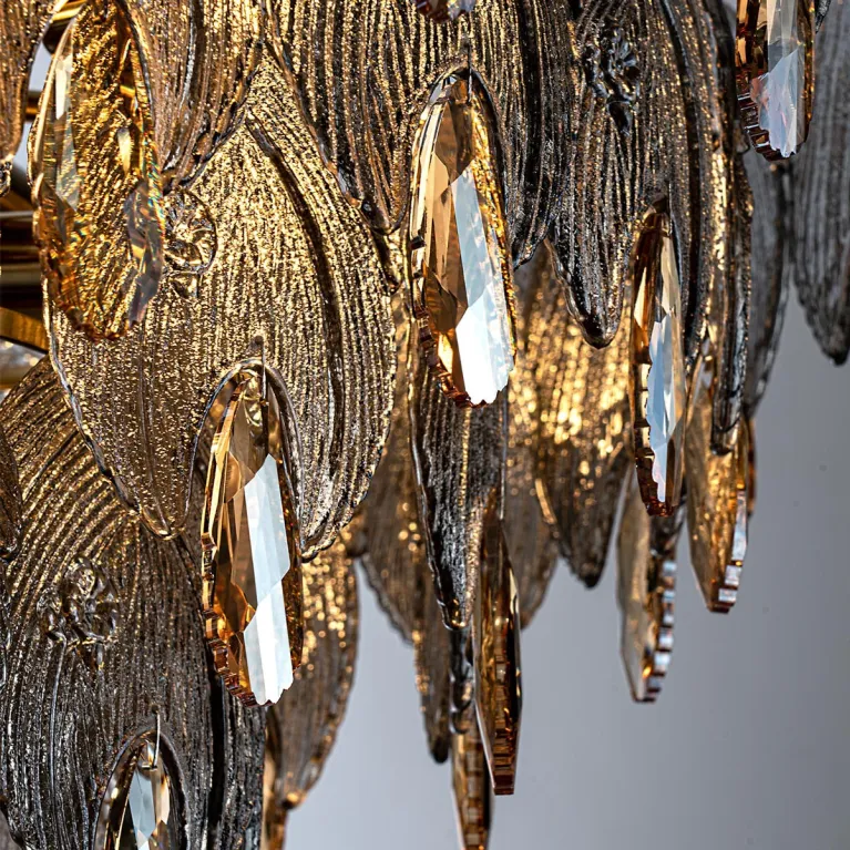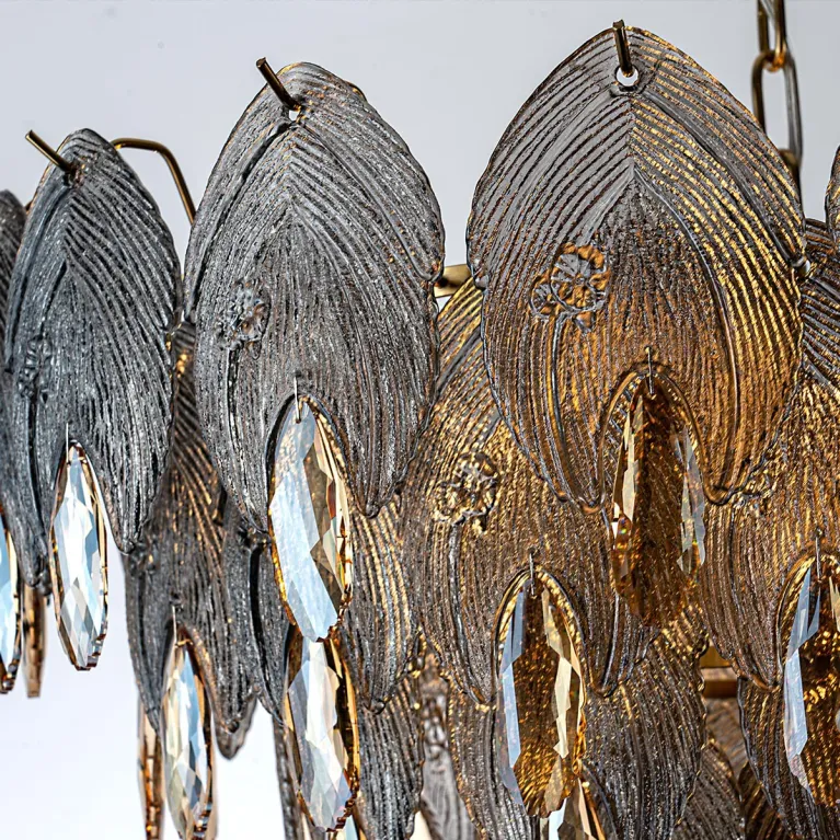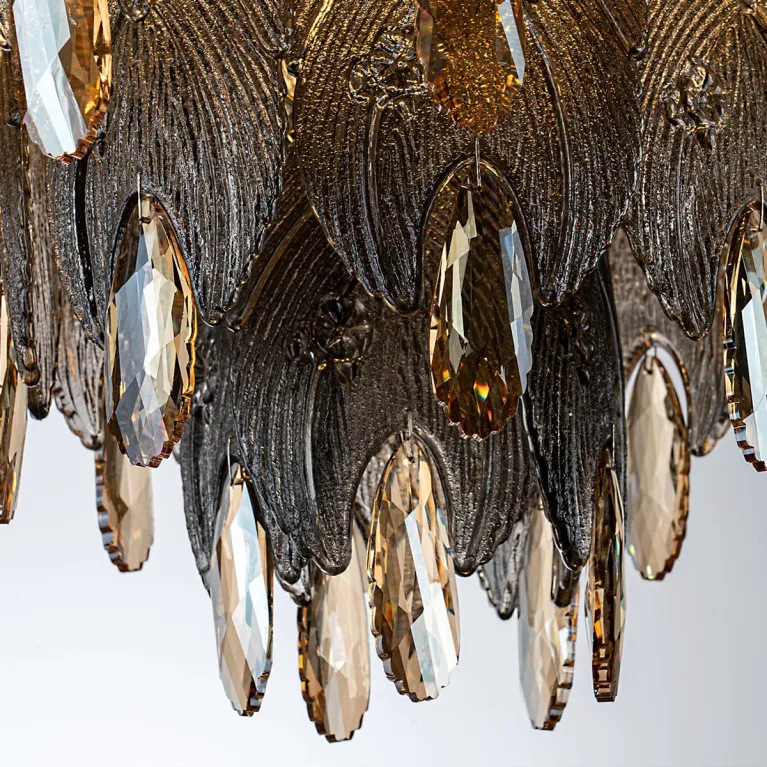 Преобладающий цвет плафонов: Дымчатый, арматуры: Латунь; материал изготовления арматуры: Металл, размеры, мм: / высота 860 / диаметр 630. Общая мощность – 480 Ватт. Основной тип ламп, предусмотренный производителем: Накаливания с цоколем E14. В зависимости от предпочтений можно использовать лампы теплового, холодного или нейтрального света, за исключением люстр с типом цоколя LED.