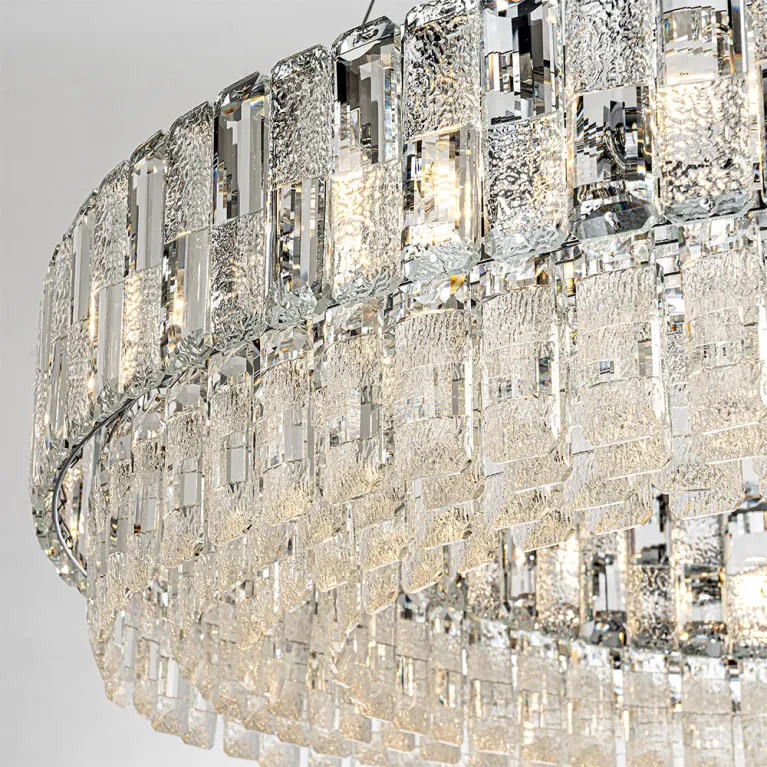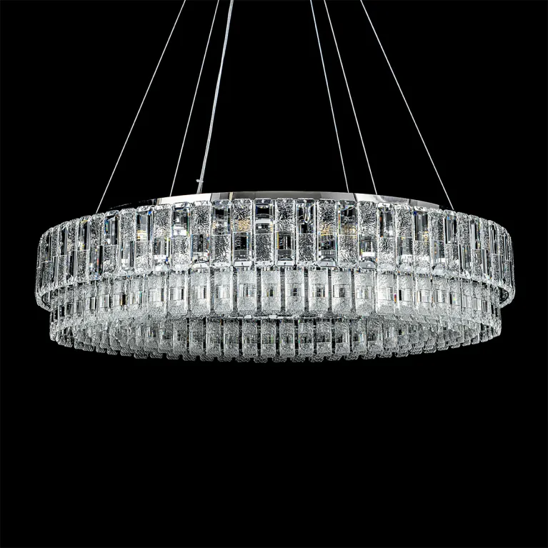 Преобладающий цвет плафонов: Прозрачный, арматуры: Хром; материал изготовления арматуры: Металл, размеры, мм: / ширина 160 / высота 1380 / диаметр 800. Общая мощность – 560 Ватт, а максимальная площадь освещения до 17 м2. Основной тип ламп, предусмотренный производителем: Накаливания с цоколем E14. В зависимости от предпочтений можно использовать лампы теплового, холодного или нейтрального света, за исключением люстр с типом цоколя LED.