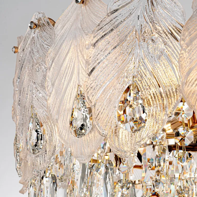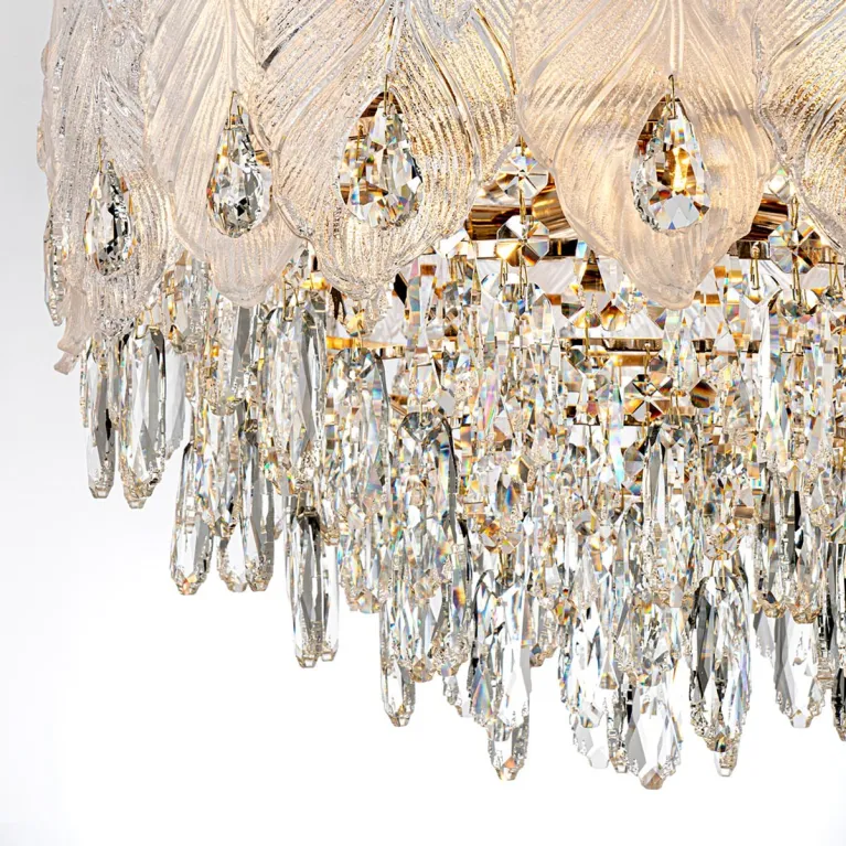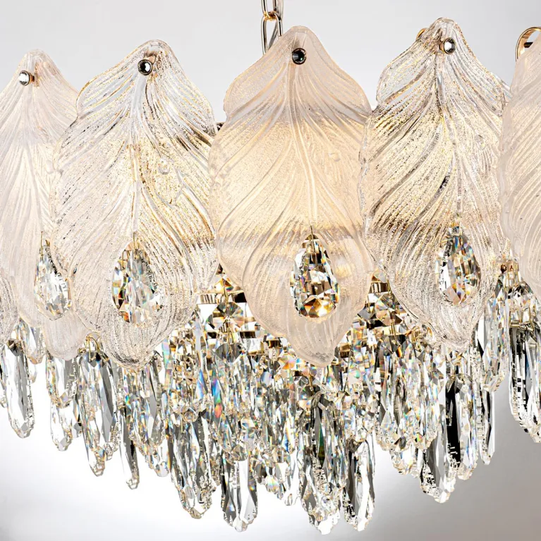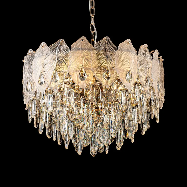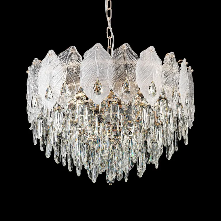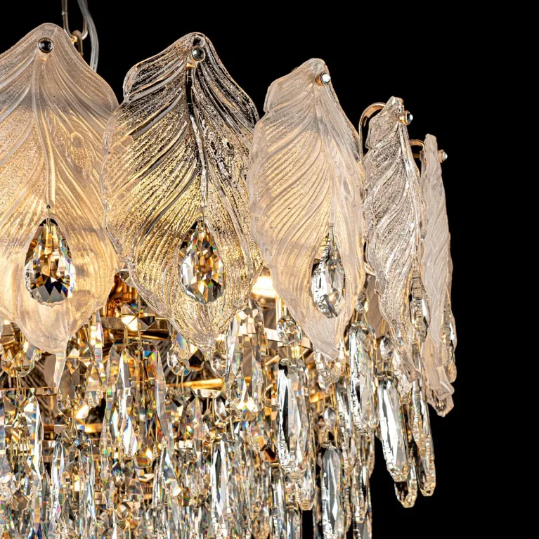 Преобладающий цвет плафонов: Прозрачный, арматуры: Золото; материал изготовления арматуры: Металл, размеры, мм: / высота 1110 / диаметр 600. Общая мощность – 480 Ватт, а максимальная площадь освещения до 17 м2. Основной тип ламп, предусмотренный производителем: Накаливания с цоколем E14. В зависимости от предпочтений можно использовать лампы теплового, холодного или нейтрального света, за исключением люстр с типом цоколя LED.
