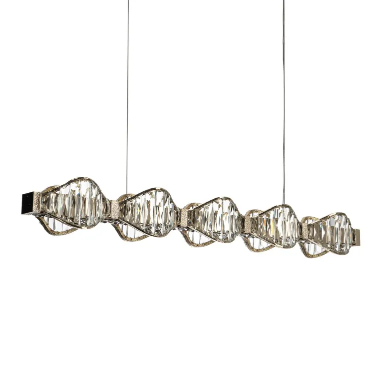 Преобладающий цвет плафонов: Прозрачный, арматуры: Шампань; материал изготовления арматуры: Металл, размеры, мм: длина 1120 / ширина 155 / высота 1850 Общая мощность – 100 Ватт, а максимальная площадь освещения до 15 м2. Основной тип ламп, предусмотренный производителем: Светодиодная с цоколем LED. В зависимости от предпочтений можно использовать лампы теплового, холодного или нейтрального света, за исключением люстр с типом цоколя LED.