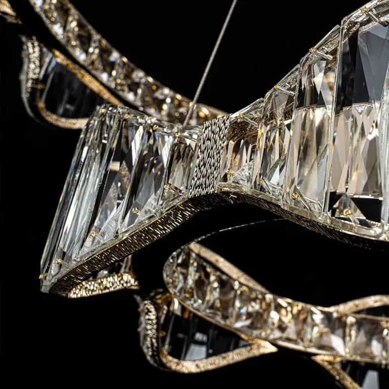 Преобладающий цвет плафонов: Прозрачный, арматуры: Шампань; материал изготовления арматуры: Металл, размеры, мм: / ширина 90 / высота 1850 / диаметр 800. Общая мощность – 160 Ватт, а максимальная площадь освещения до 20 м2. Основной тип ламп, предусмотренный производителем: Светодиодная с цоколем LED. В зависимости от предпочтений можно использовать лампы теплового, холодного или нейтрального света, за исключением люстр с типом цоколя LED.