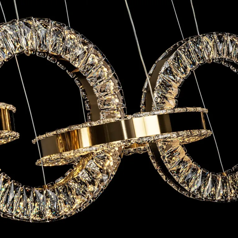 Преобладающий цвет плафонов: Прозрачный, арматуры: Латунь; материал изготовления арматуры: Металл, размеры, мм: длина 1100 / ширина 315 / высота 1100 Общая мощность – 50 Ватт, а максимальная площадь освещения до 20 м2. Основной тип ламп, предусмотренный производителем: Светодиодная с цоколем LED. В зависимости от предпочтений можно использовать лампы теплового, холодного или нейтрального света, за исключением люстр с типом цоколя LED.