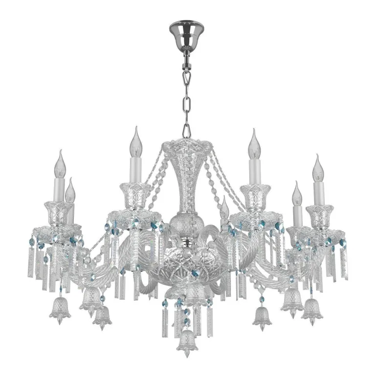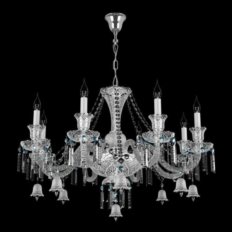 Эта люстра имеет 8 рожков, в каждый из которых можно установить лампочку типа E14 мощностью до 40 Вт. Такое решение обеспечивает яркое и равномерное освещение, создавая уютную атмосферу в гостиной, столовой или спальне. Основание люстры выполнено в элегантном золотом цвете, что добавляет роскоши и утонченности вашему интерьеру.