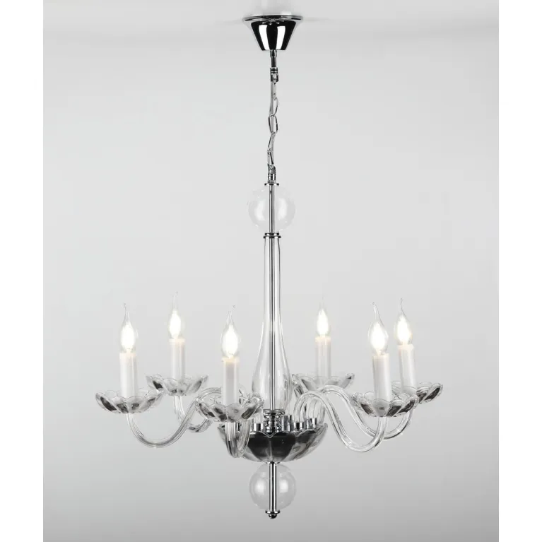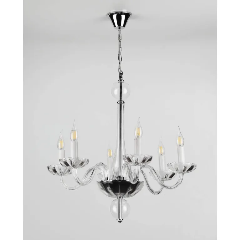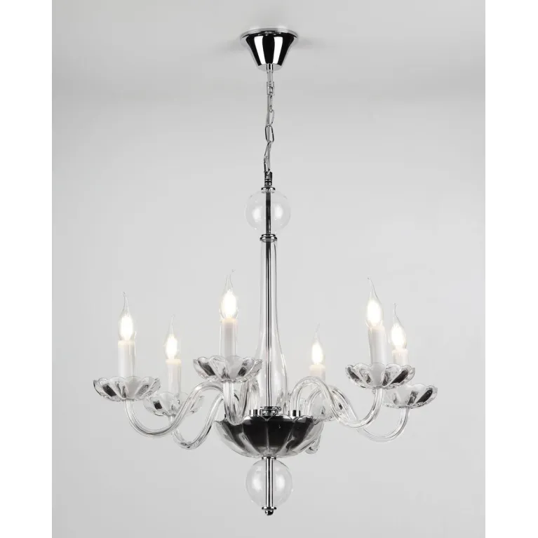 Люстра оснащена шестью источниками света с цоколем E14, что позволяет использовать различные типы ламп, в том числе энергосберегающие и светодиодные. Суммарная мощность ламп составляет 36 Вт, что обеспечивает яркое и равномерное освещение пространства.
