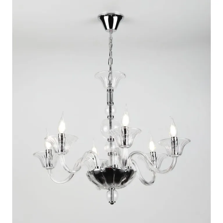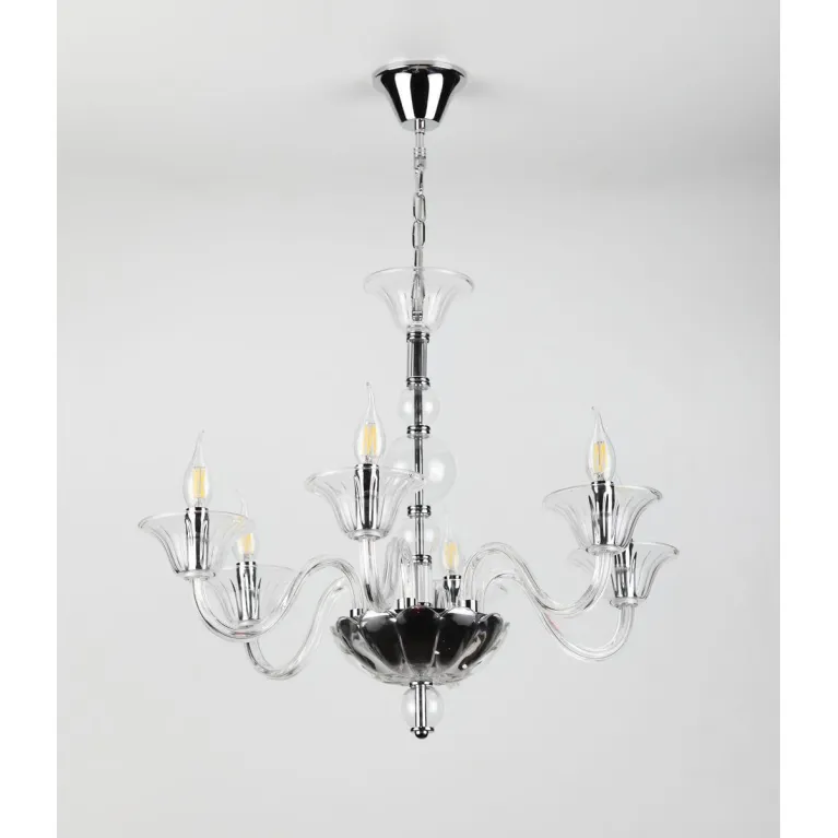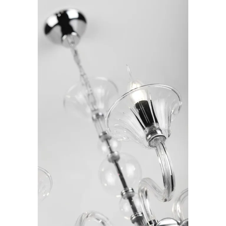 Корпус люстры выполнен из высококачественного металла и имеет стильное хромированное покрытие, придающее изделию современный и элегантный вид. Легкие и прозрачные хрустальные подвески добавляют изящества и утонченности, создавая неповторимую атмосферу уюта и гармонии.