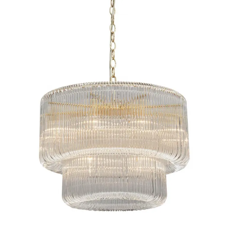 Люстра оснащена 12 лампами, что обеспечивает яркое и равномерное освещение пространства. Она идеально подходит для просторных гостиных, столовых или спален, создавая комфортную и уютную атмосферу. Основание выполнено из прочного металла, что гарантирует долговечность и надежность конструкции.