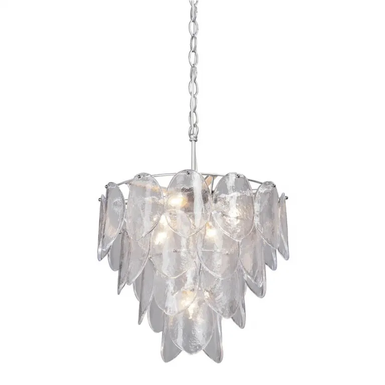 Корпус люстры выполнен из прочного металла и украшен элегантными хрустальными подвесками, которые придают изделию неповторимый шарм и утонченную роскошь. Подвесная конструкция позволяет регулировать высоту люстры, что обеспечивает удобство при установке и адаптации к различным высотам потолков.