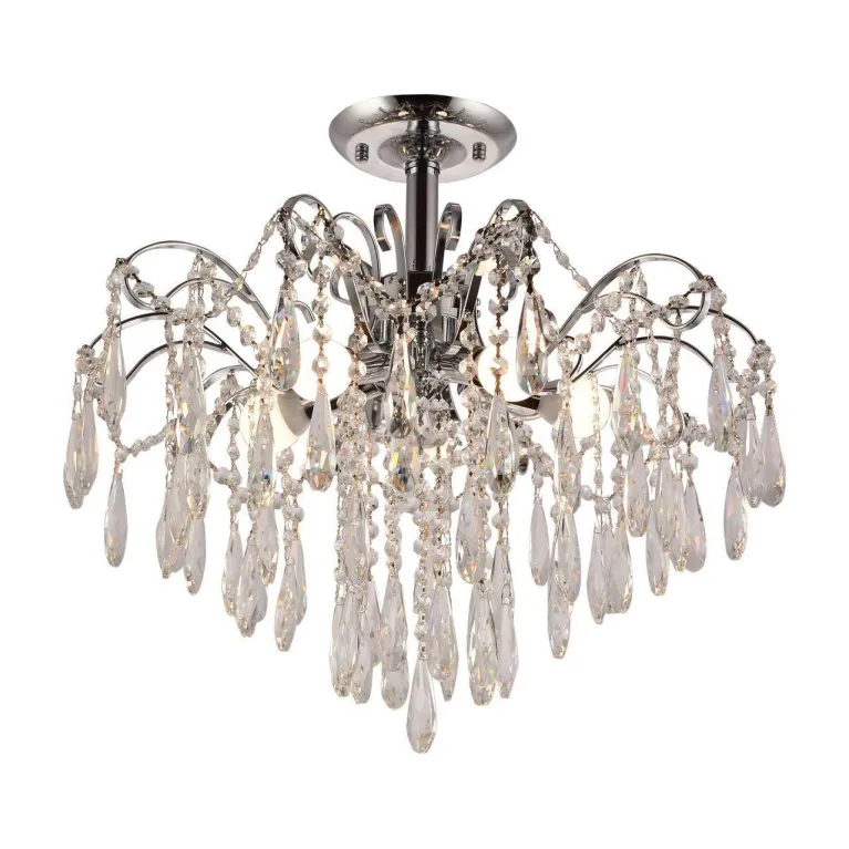 Люстра выполнена в изысканном хрустальном корпусе, который придает ей неповторимый блеск и роскошь. Основание изготовлено из прочного металла и имеет хромированное покрытие, добавляющее современности и стиля.
