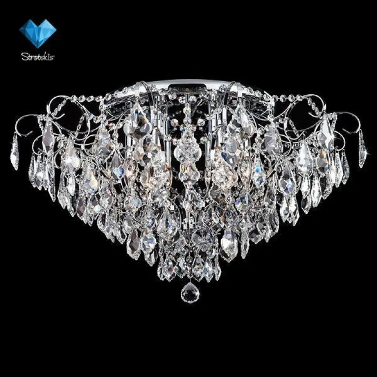 Эта люстра выполнена в хромированном корпусе, который прекрасно гармонирует с современными интерьерами. Прозрачные хрустальные подвески строццис придают ей неповторимый блеск и изысканность, создавая эффектное освещение и утонченную атмосферу.